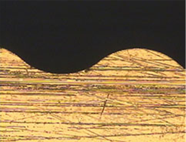 ピッチは50μ程度。深さは25μです。